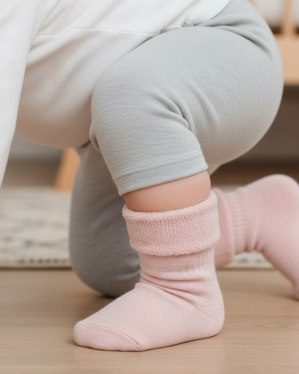 Give your baby the sweetest start with our 85% Merino sherpa socks, crafted to keep every tiny toe wrapped in warmth and love. Like a gentle hug, the plush fleece lining caresses delicate skin, while Merino wool’s naturally crimped fibers trap warmth in soft little air pockets, cozying your baby without ever overheating. Each pair helps your little one stay perfectly warm, dry, and comfortable, no matter the season. Naturally breathable, moisture-wicking, and silky smooth, Merino wool is gentle enough for even the most sensitive skin. Soft, soothing, and full of care, these wool socks are made for life’s snuggliest moments.