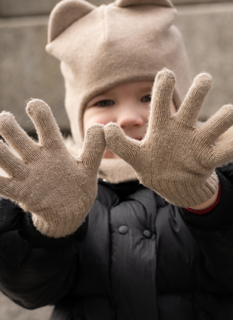 Varm baslager, extra tjock tröja, vinterleggings och handskar… Något saknas? Våra små älskar att vara ute så mycket de kan, därför måste vi se till att de är helt varma och bekväma, särskilt på kyliga och blåsiga dagar. Det går inte utan mysiga strumpor. Gjorda av en ekologisk blandning av merinoull och kashmir, kommer våra tubtofflor mjukt att omsluta din bebis tår och hålla dem fräscha och varma. Glöm inte att ta hand om dina små barns öron och näsa också. Andningsbara balaklavor, gjorda av 100% merinoull, kommer mjukt att omsluta öron, ansikte och nacke, så ingen frostig vind kan tränga in. Håll dina mini-människor varma och gosiga – kolla in våra färgglada accessoarer, som passar perfekt för både pojkar och flickor.