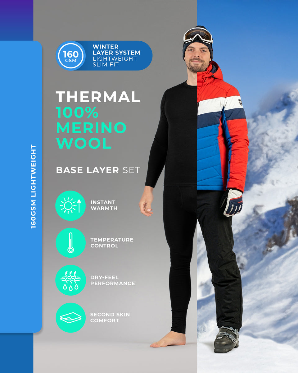 Medvetet tillverkad av ren Merinoull, kombinationen består av en klassisk långärmad t-shirt som är fläckresistent och lätta, fukttransporterande byxor. Detta set har en kroppsnära silhuett som hjälper dig att bemästra allt som dagen kan kasta på dig. Vårt fokus på komfort och rörlighet säkerställer att din outfit sitter på plats när du är på språng. För bästa skydd är de klassiska byxorna varma, snabbtorkande och har flatlocksömmar så att du kan njuta av absolut rörelsefrihet. Båda plaggen är tillverkade av vår lätta och mjukt stretchiga Merinoull som naturligt effektivt hanterar fukt. Fläckar och skrynklor är inget bekymmer med vårt fantastiska set tack vare dess fläckresistenta egenskaper.