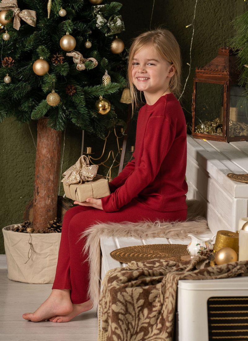 Överraska din bebis med något mjuka, varma och bekväma, som menique. Unisex-overaller är perfekta för spädbarn, medan äldre barn och småbarn definitivt kommer att älska matchande pyjamas och mysset. Naturliga, andningsbara och temperaturreglerande 100% Merinoull kläder låter ditt barn njuta av vardagsaktiviteter, både ute och inne. Royal cherry red eller mörkgrön färger kommer att skapa den där festliga stämningen och din bebis kommer att njuta av denna present hela det kommande året.