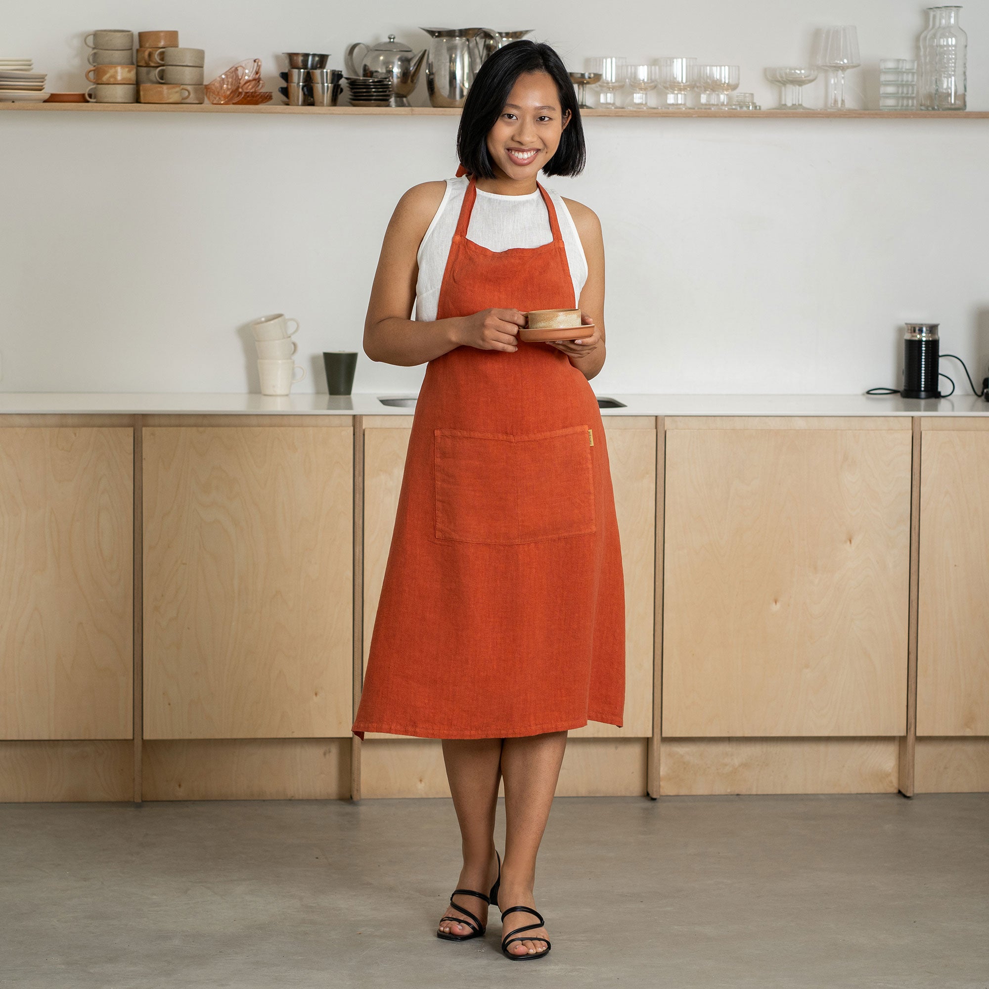 Keep your clothes clean and protected with our apron collection. Made from 100% Linen or linen/cotton blends, our unisex aprons are tough and durable, ready to tackle any messy task in the kitchen, garden, or workshop. Say goodbye to stained shirts and pants while cooking, gardening, grilling, or doing DIY projects. Discover Japanese-style cross back aprons, bib aprons, adjustable and traditional aprons. Our aprons are easy to clean and will keep you looking neat no matter what you're up to.