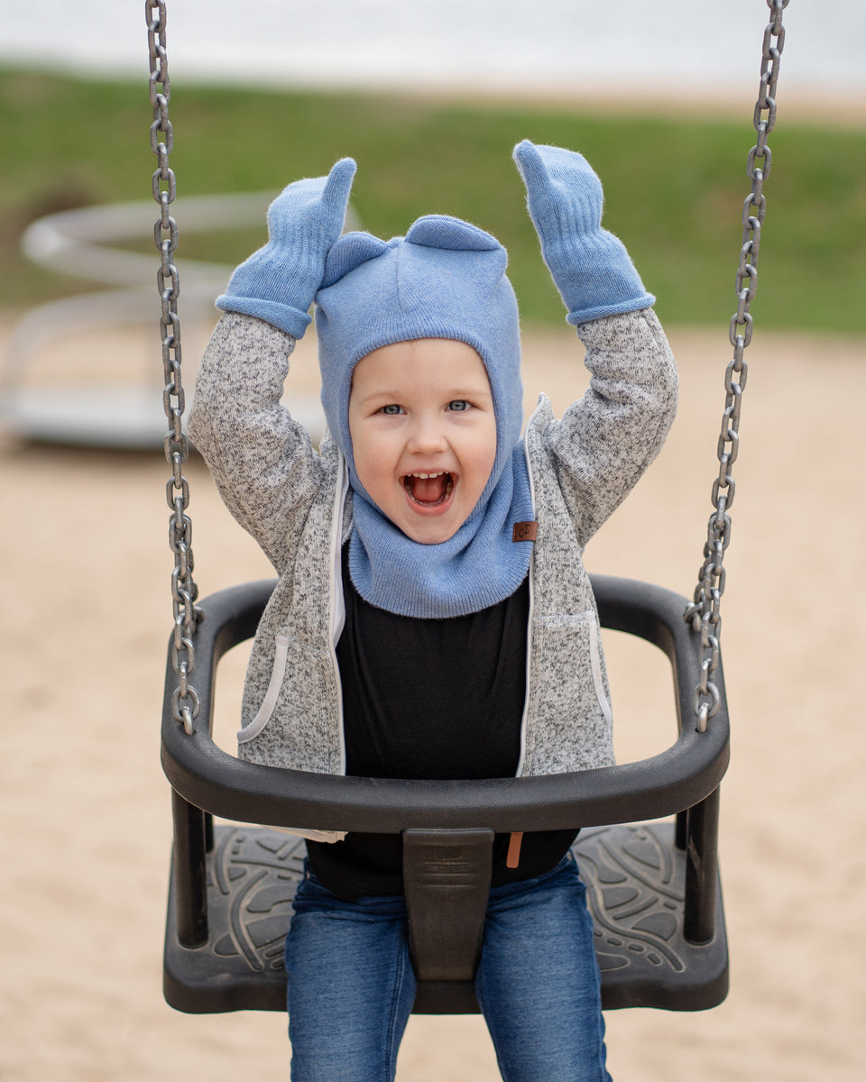 Whether your kids are skiing or building snowman or just need something for a walk in the forest, our winter accessory set will keep them warm and cozy. Designed for girls and boys, this unisex two-piece set includes an adorable balaclava hat in a design of teddy bear and a pair of matching mittens (always a plus). Each garment is made from moisture-wicking and super soft Merino wool and Cashmere blend. For younger kids, mittens are the best choice, because when the fingers are together, the amount of heat is greater that if they were individually wrapped. In addition, this cute balaclava is shaped like a bear to attract children. This hat is not only perfect for dress-up occasions, but is also super functional.