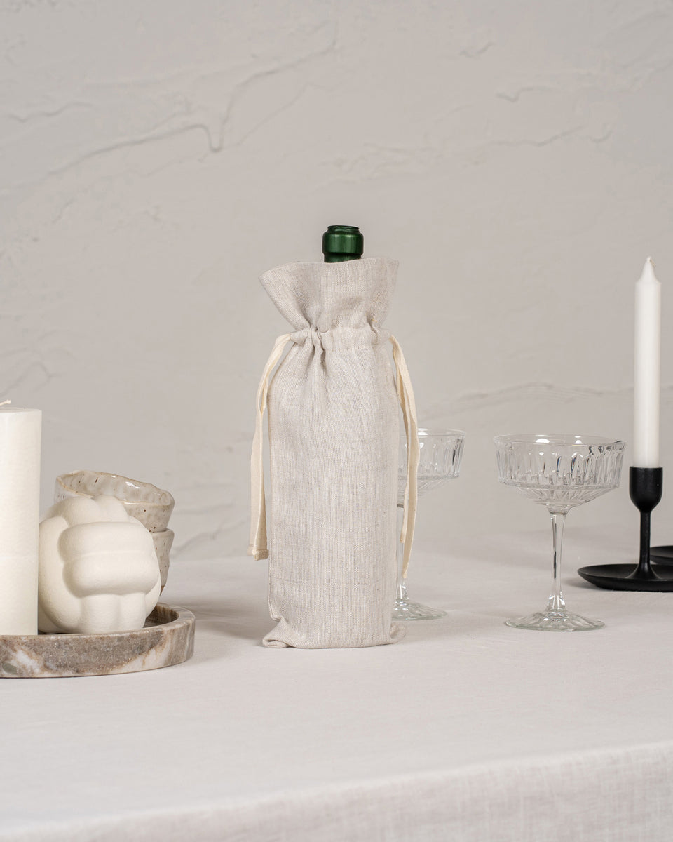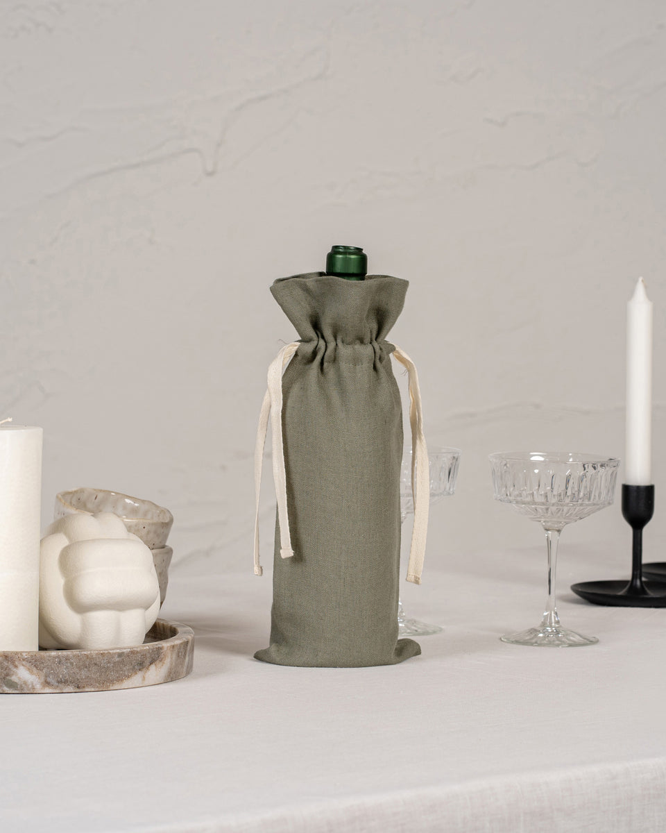 Our elegant linen wine bottle gift bag is designed with a practical string closure at the top, it brings a touch of festive charm. Available in the ultimate Christmas colors - natural, a vibrant pure red hue, and a sophisticated stone green - this bag brings warmth and style to your holiday celebrations. Perfect for gift-giving or as a reusable accessory for your own gatherings, this durable and eco-friendly bag is as thoughtful as the wine it holds.