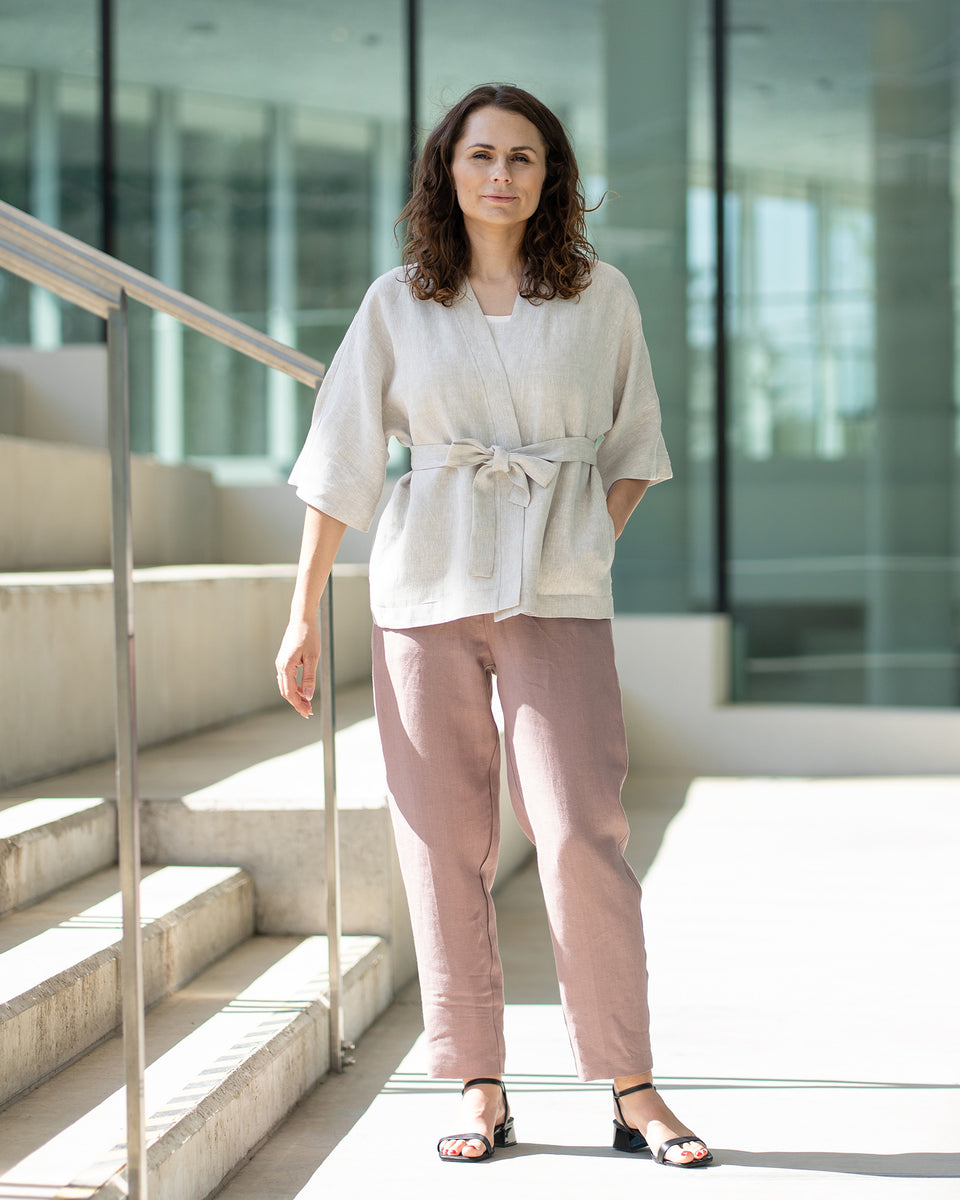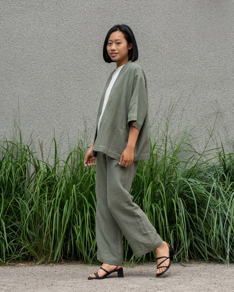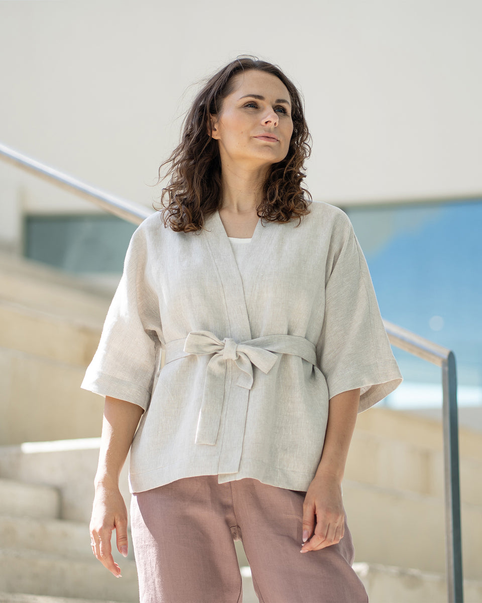 Kimono-style cardigan Sakura Inspired by traditional Japanese garments, it features loose, wide sleeves and a graceful silhouette that drapes beautifully on any body shape.