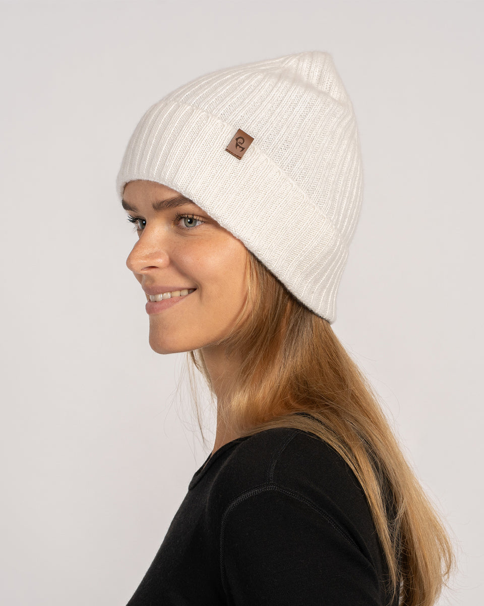 Discover a perfect blend of coziness, plushness, and fashion with our knitted cashmere beanie. Made from exceptionally soft Cashmere and premium Merino wool, this heavily ribbed hat provides exceptional warmth, making it resilient against the harshest cold. Additionally, the hat, designed for transitioning weather, boasts a smooth knit that imparts a sensation of cloud-like comfort. Featuring moisture-wicking and thermoregulating properties, the stylish accessory can protect your head from overheating by rapidly moving sweat away through fabric. Thick but not too bulky beanie has a minimalist design and is very stretchy to fit most women.