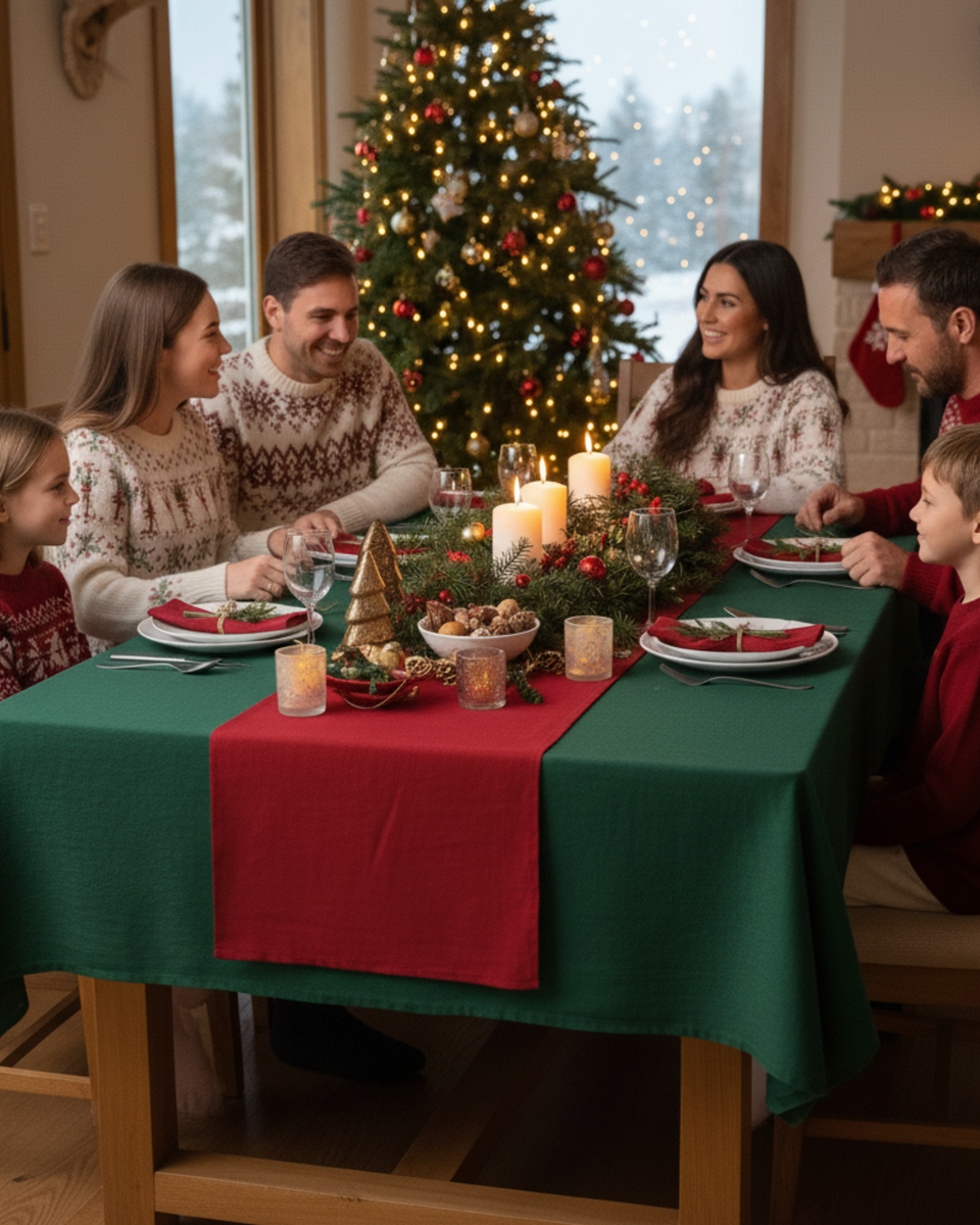 Skapa en mysig julstämning i ditt hem med denna röda julbordsduk, tillverkad av 100% naturlig linne. Den rika röda tonen på bordsduken tillför värme och elegans till varje julbord och kompletterar perfekt ljus, gröna växter och festlig dekoration. Mjuk men slitstark, en julbordsduk designad för att hålla i många glada säsonger. Kombinera duken med våra andra jultextilier, som matchande servetter eller en skogsgrön linneservett, för att skapa ett vackert samordnat och festligt bord. Perfekt för att dekorera ditt eget hem eller ge bort som en gåva till någon speciell, gör denna linneservett julen lite mer magisk.
