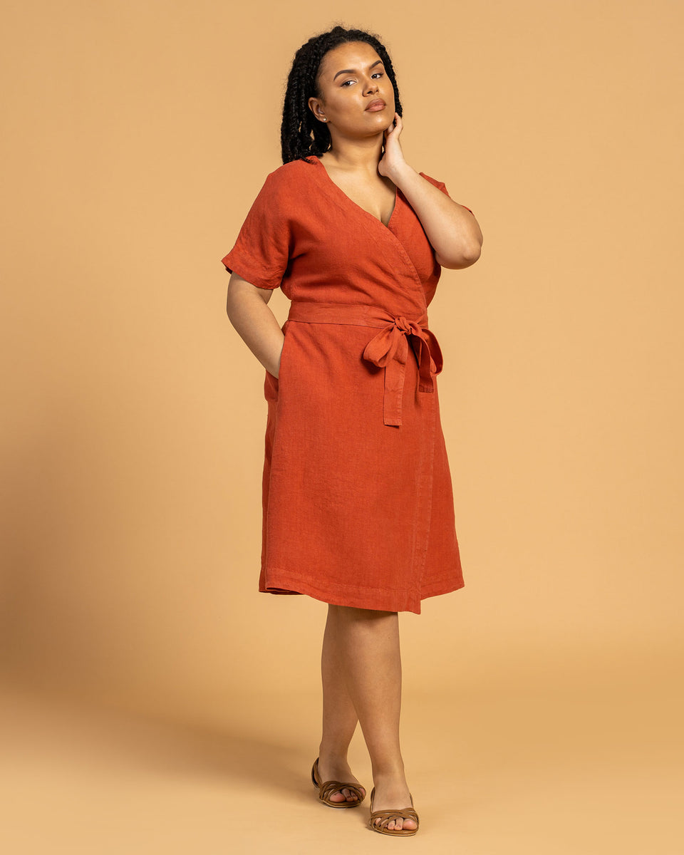 Mjuk, stark och hållbart tillverkad av 100 % linne, vår tidlösa omlottklänning med justerbart knytband definierar midjan och framhäver dina kurvor. Med en imponerande struktur på 200 gsm tyg utan att kännas för tung, har linnéklänningen en mångsidig V-ringning, är andningsbar och mycket absorberande. Och nämnde vi de dolda fickorna? Fickor som fungerar perfekt.
