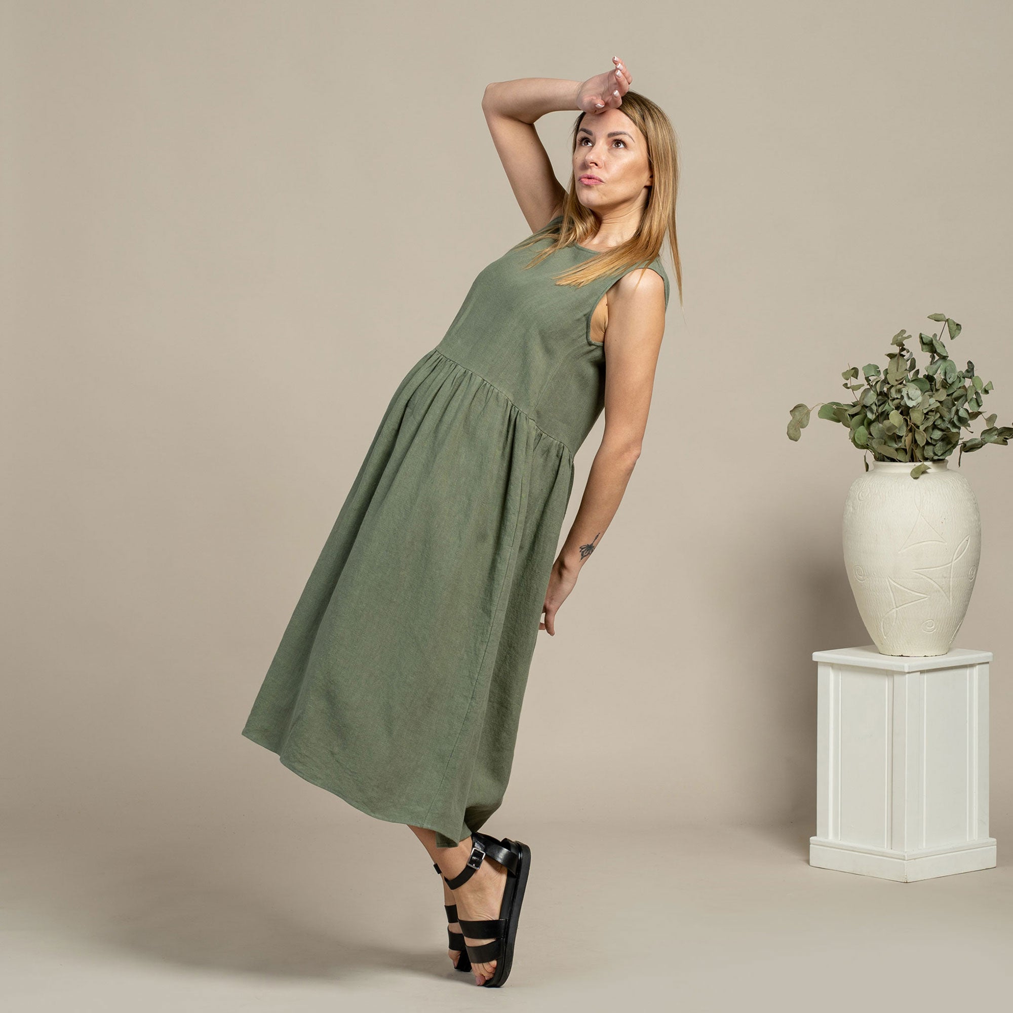 Upptäck vår ekologiska Linen-kollektion av avslappnade klänningar, skräddarsydda till perfektion för dina vardagsäventyr. Känn mångsidigheten i våra maxi-, midi- och miniklänningar, som erbjuder en sömlös övergång från en mysig dag hemma till en härlig brunch mitt i stan. Otroligt stilrena och bekväma, våra Linen-klänningar har en oemotståndlig charm som får dig att bli kär i dem om och om igen. Välj bland ett brett utbud av vackra designer som passar din unika smak och ditt humör. Oavsett om du slappar inomhus eller går ut, är Linen casual dresses dina självklara följeslagare som ser till att du ser fantastisk ut och känner dig underbar vart än dagen tar dig.