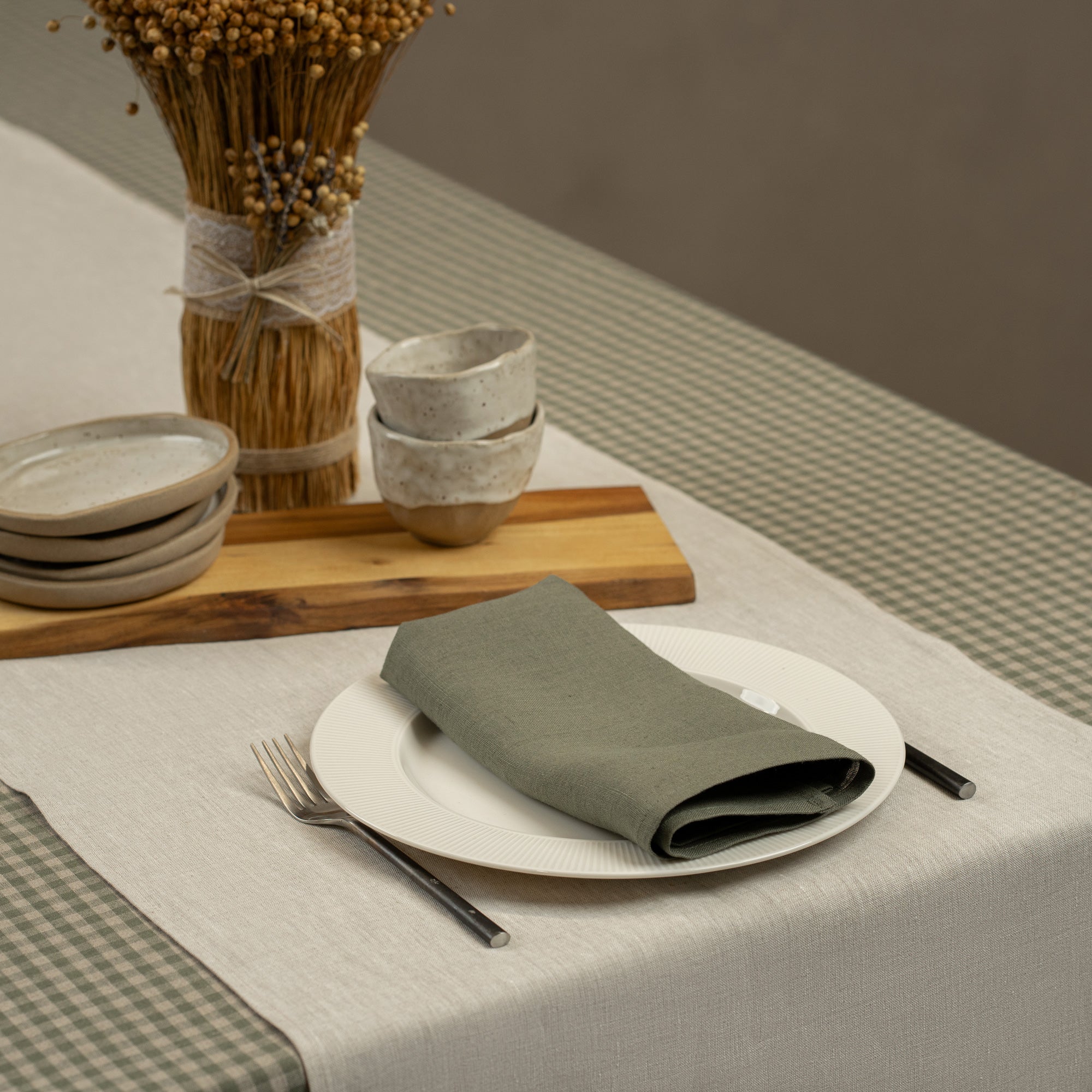 Förbättra din matsalsinredning med vår matsalskollektion, som innehåller en rad lyxiga bordstillbehör. Upptäck bordsdukar i linne för servering, inklusive servetter, bordsdukar, bordsdukslöpare och mer. Varje del erbjuder exklusivt hantverk och tillför en touch av lyx till ditt matbord. Oavsett om du håller en formell middagsbjudning eller njuter av en avslappnad måltid med familj och vänner, är denna kollektion perfekt för dig!