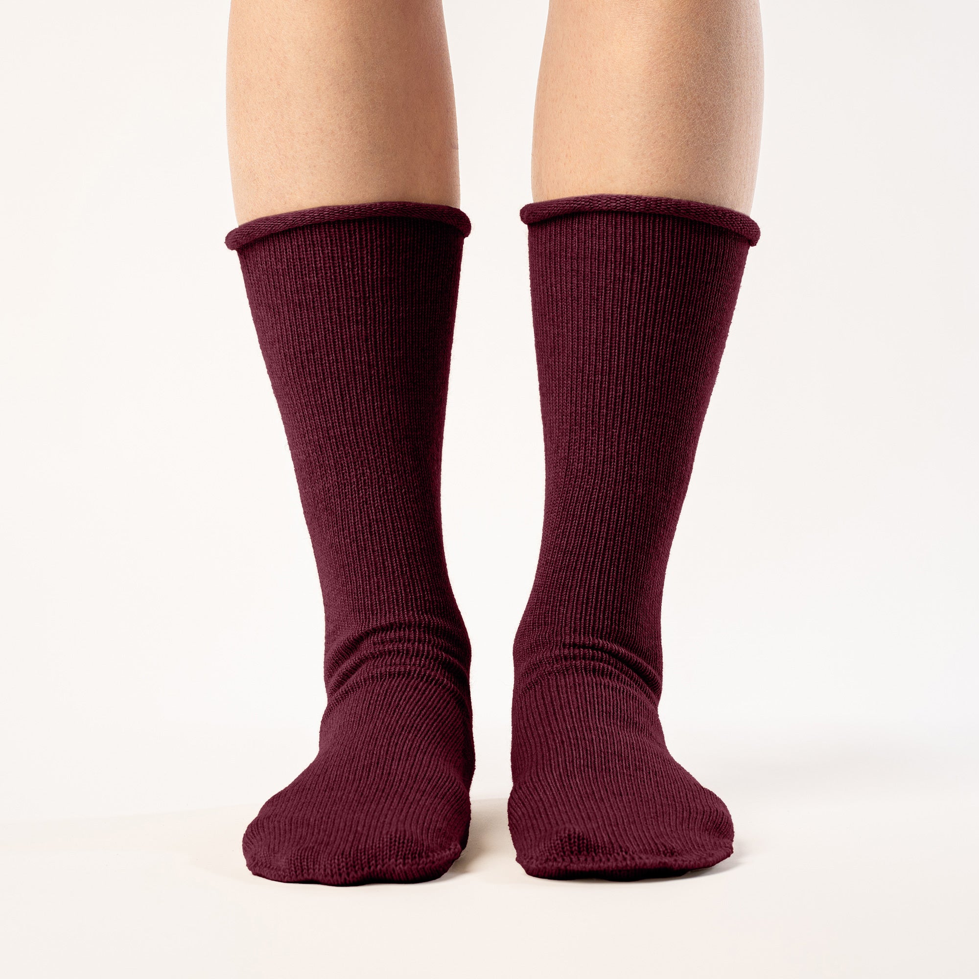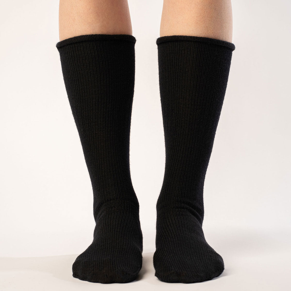 Om du letar efter strumpor som håller längst har du kommit rätt. Våra stickade strumpor i 100% merinoull är inte bara hållbara och långlivade. Därför är våra strumpor ett av de bästa alternativen för svettiga fötter, eftersom tyget absorberar fukt och avdunstar den i luften. Dessutom är menique-strumpor otroligt bekväma att bära och mjuka mot huden. Andningsbara egenskaper som ger en kylande effekt och är bekvämare än bomull. Våra strumpor är formade som ett rör utan hälficka, vilket gör dem universella, vilket betyder att menique-strumpor passar alla storlekar. Dessutom kan du justera längden på dina strumpor på tre sätt: till hög ankel, crew eller mitt på vaden. Välj dina favoritmenique-strumpor antingen för utomhusaktiviteter eller för mysig komfort hemma.