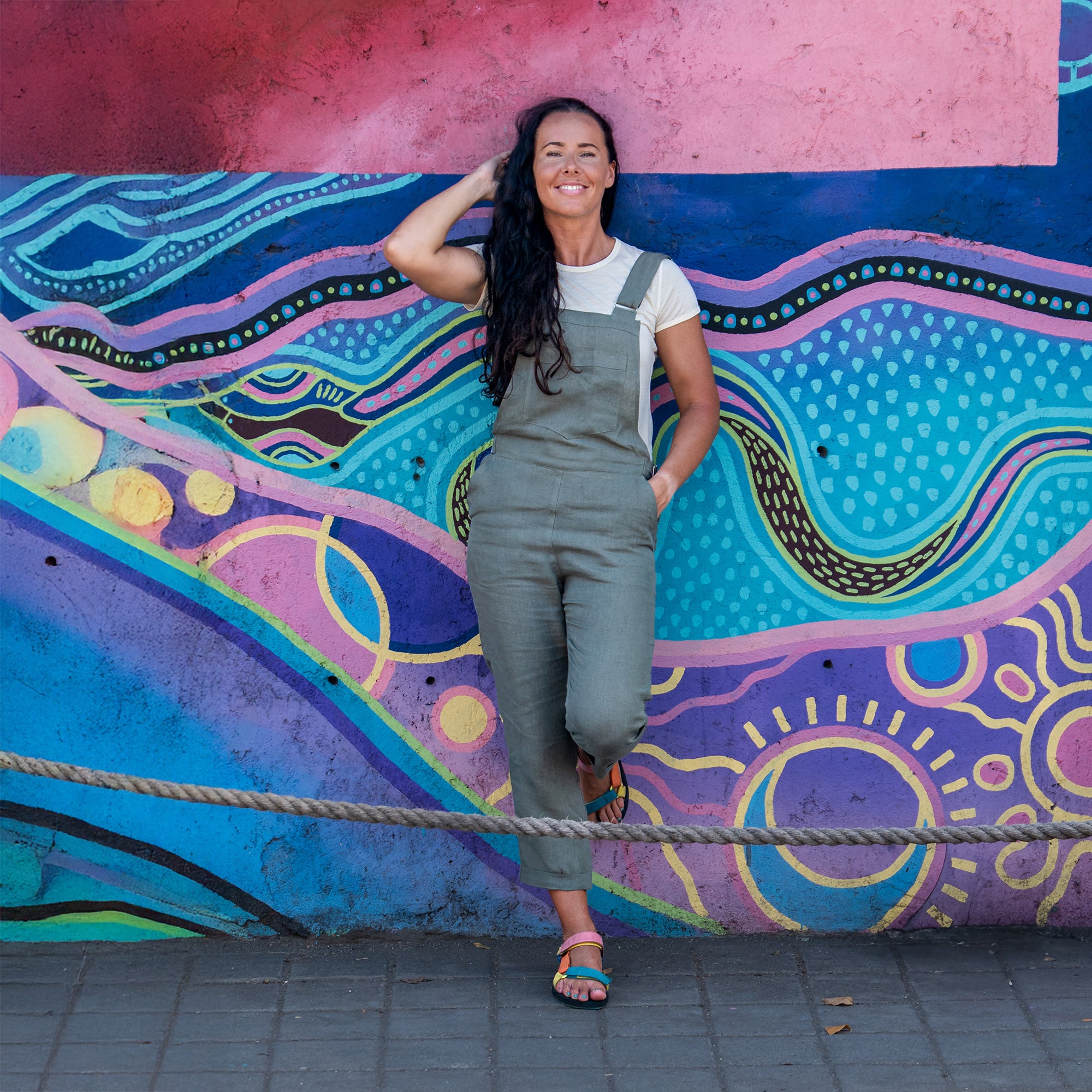 Linen Pinafore Jumpsuit Nicci Almond Brown