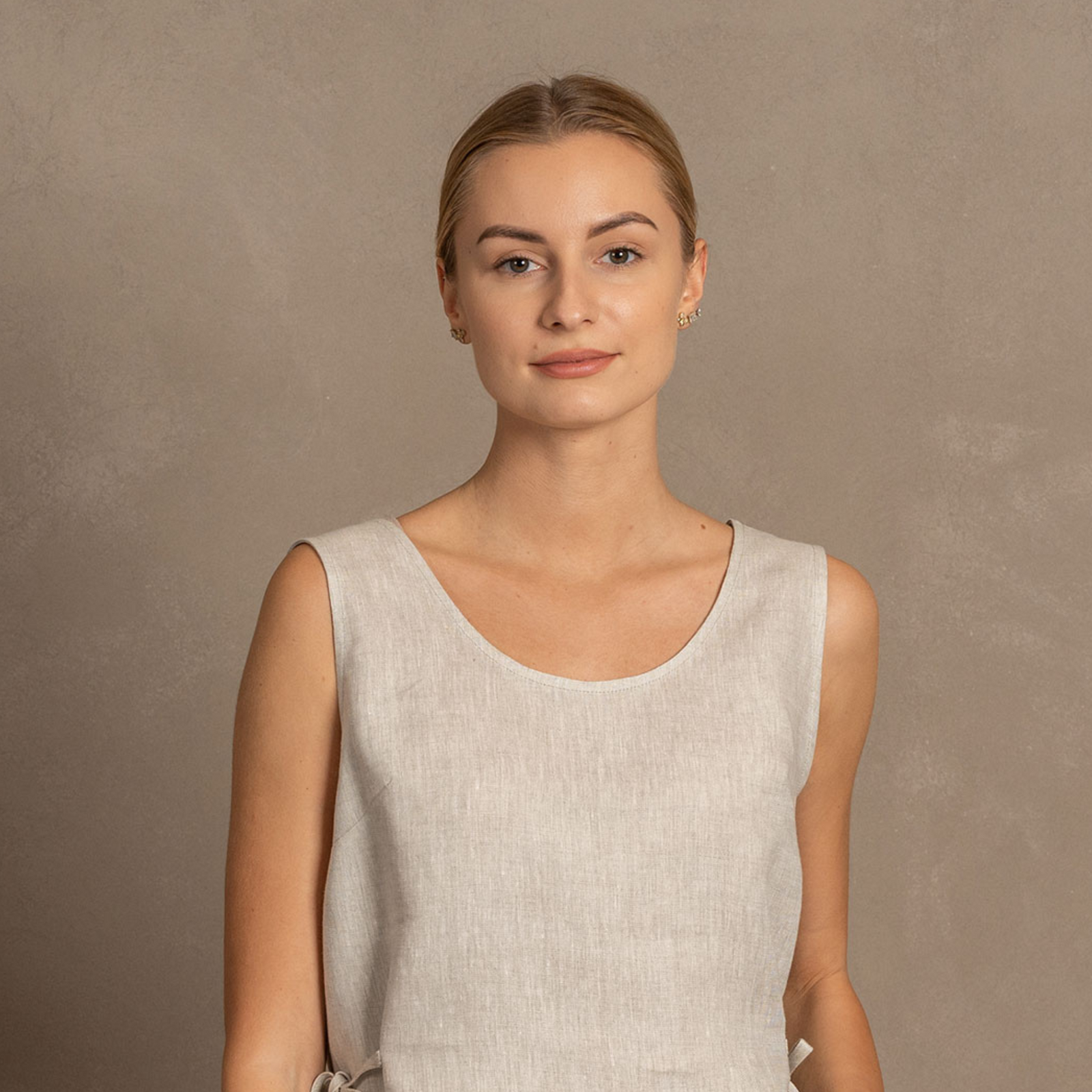 Ava vest is true to size. We suggest taking your usual size in this style to achieve the look as shown in pictures. Please note, the garment naturally softens and relaxes as you wear it throughout the day. It’ll become more comfortable as you move around in it. Please note that Linen vest AVA is a shorter variant of the Linen vest EVE.