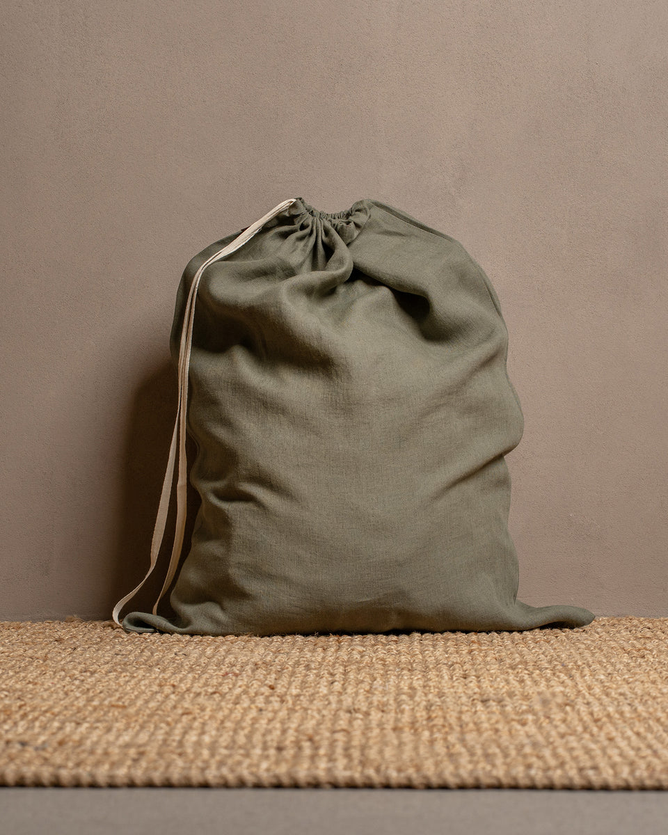 Linen laundry bag is available in 22x28"/56x71cm size.