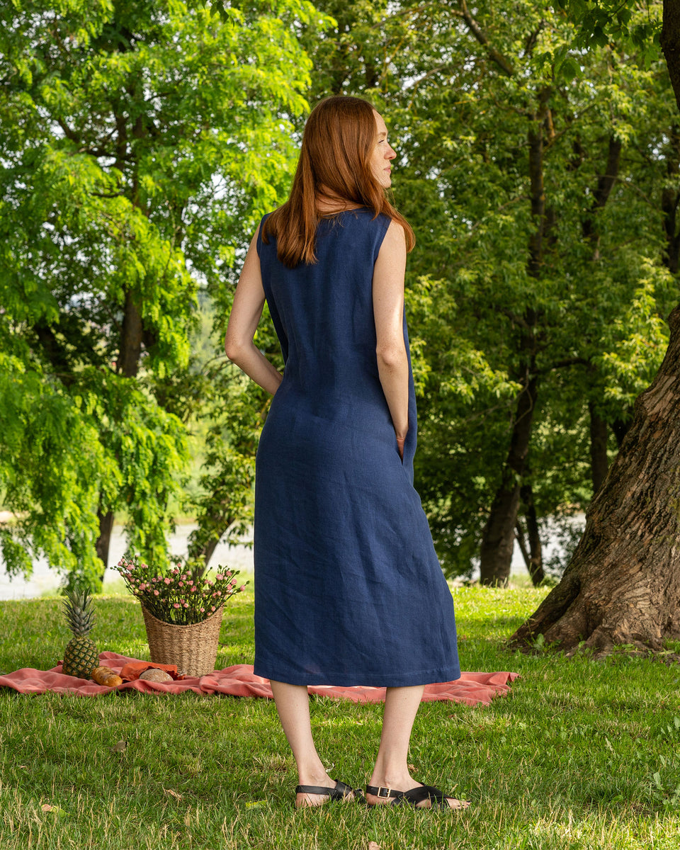 Faith summer dress with a front button-down tunic crafted from organic 100% Linen fabric. Linen sundress for women makes you feel light and airy. Women's dress features sea shell front buttons, two side pockets, and a relaxed fit that is suitable for any body type.