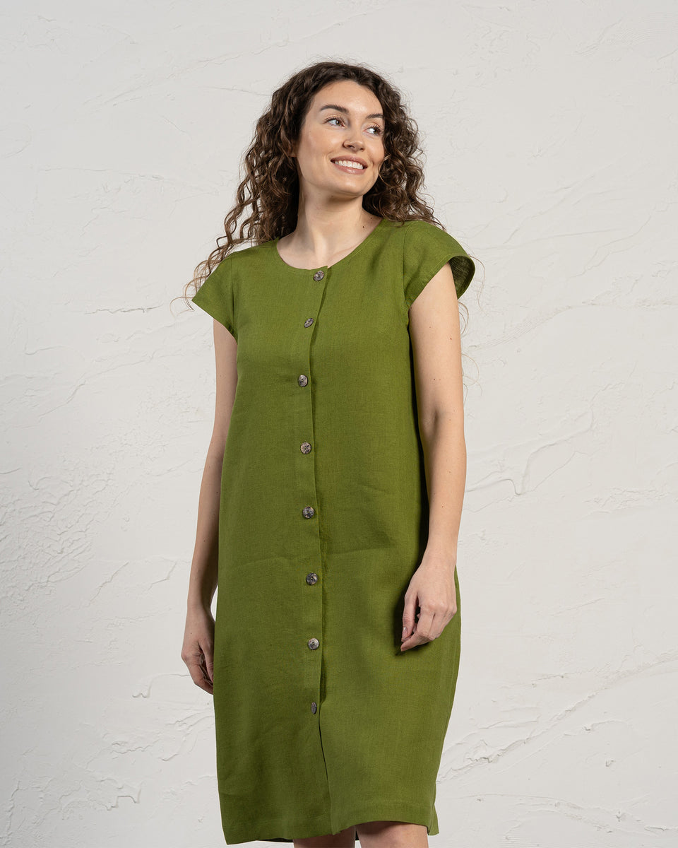 Casual dress features natural shell buttons, cap sleeves, a round neckline, and two convenient side pockets. A shift style is a versatile option that flatters most body types, gently widening from the shoulders to the bottom, creating a loose and comfortable fit. To complete the look, simply pair this dress with cute sandals, a rye hat, and a purse inspired by nature.