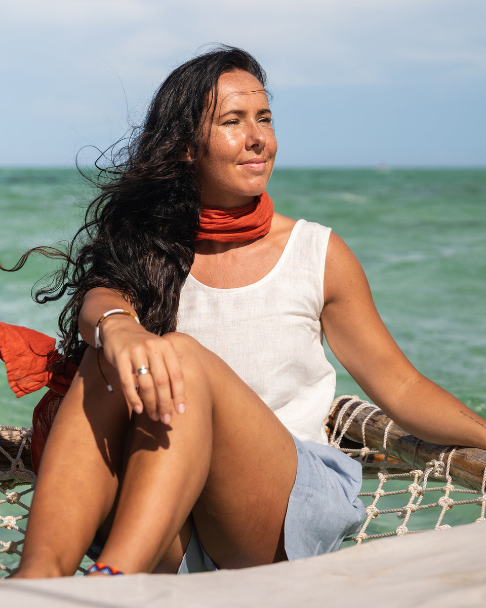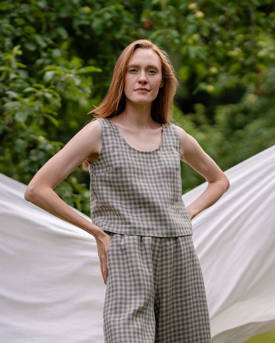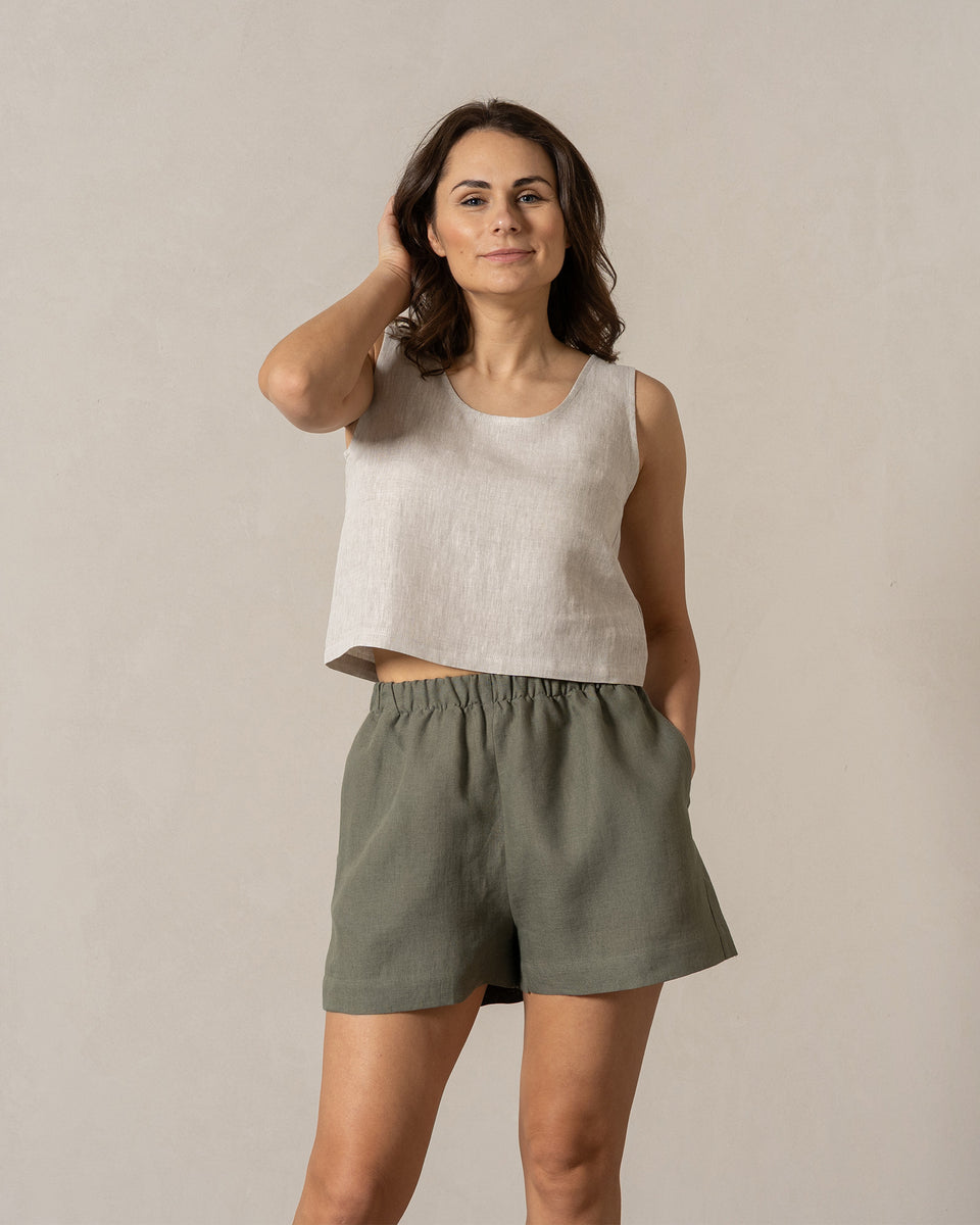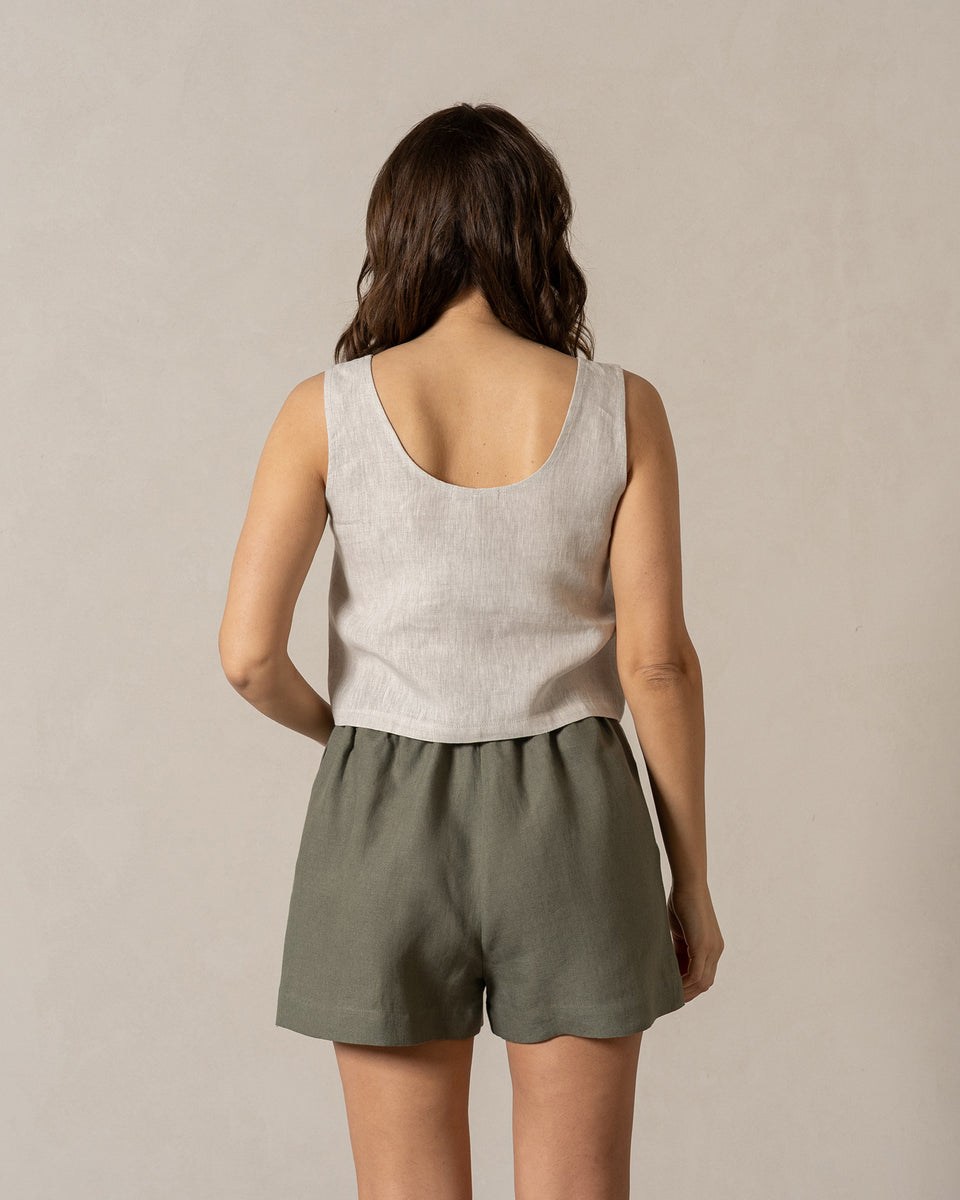 Crop top Ana sustainably made of 100% linen fabric. Sleeveless Linen top has a round neckline to embrace your neck and a straight cut. A little bit loose fit and linen fabric will let you enjoy hot summer days with no discomfort.