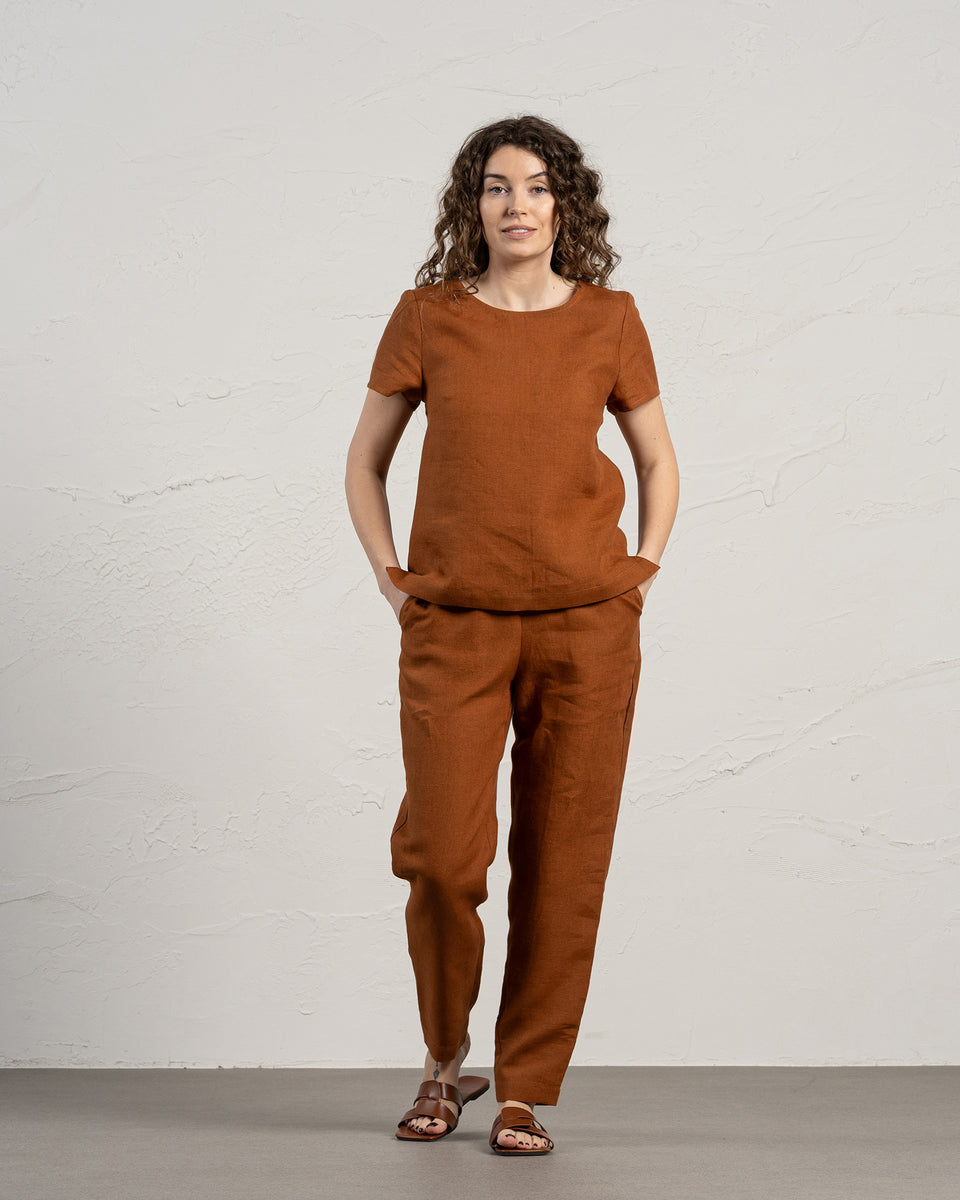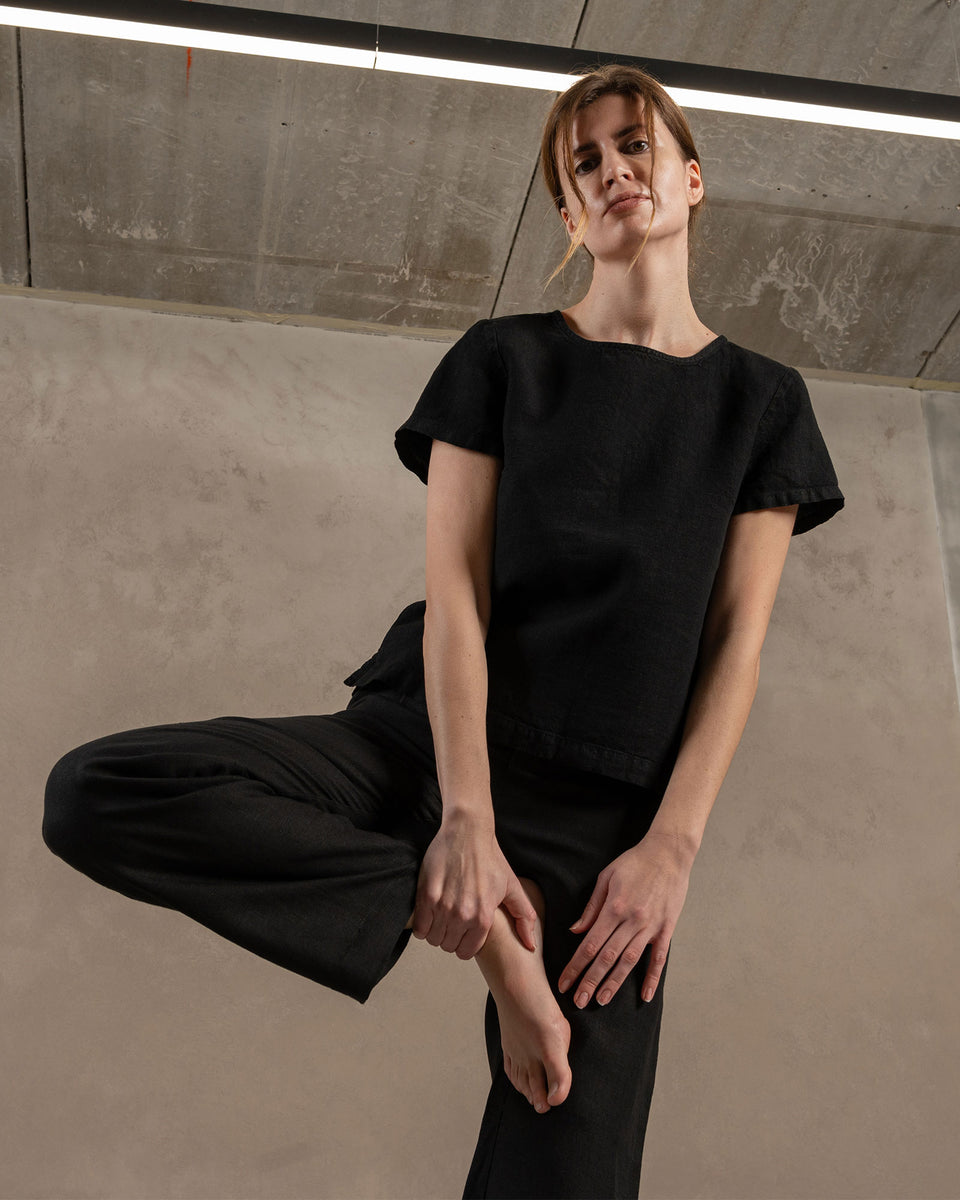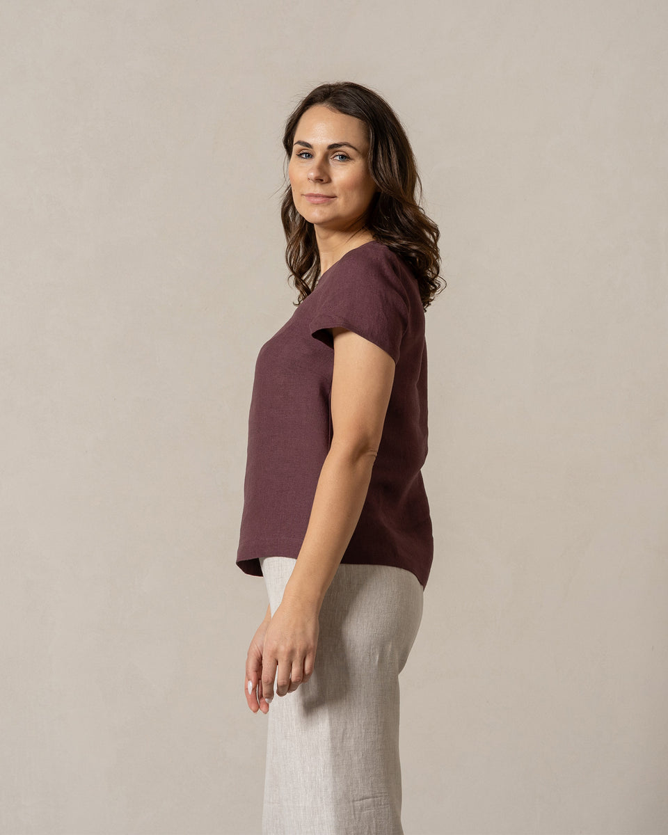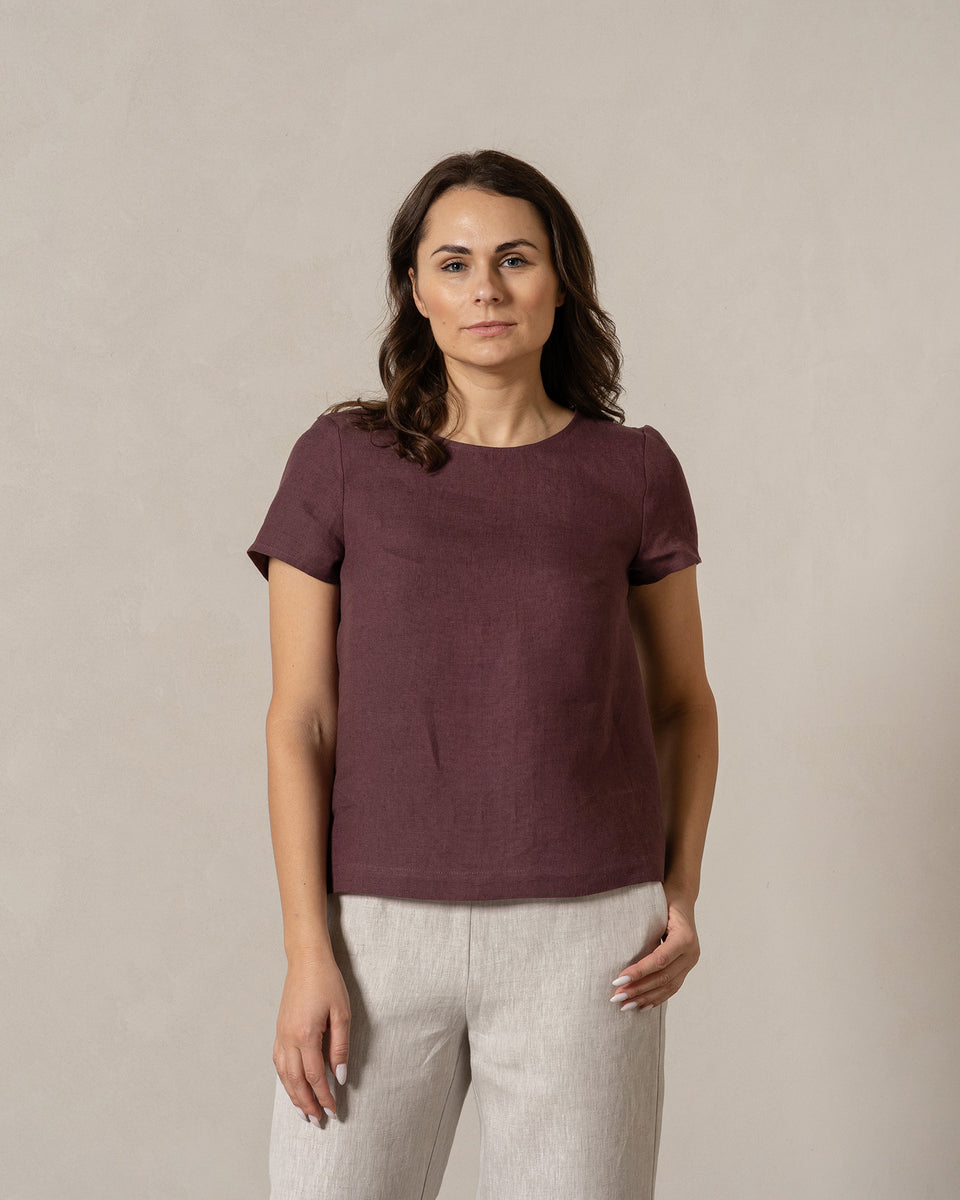 Linen blouse Emma features a round neckline, a relaxed silhouette, and the 100% natural linen fabric makes it a perfect swap for the warmer months. In addition, the linen t-shirt comes with small splits on both sides to comfortably sit around your hip. Whether you like jeans, shorts, or skirts, they all can be paired with our linen top – it can be tucked in or tucked out.