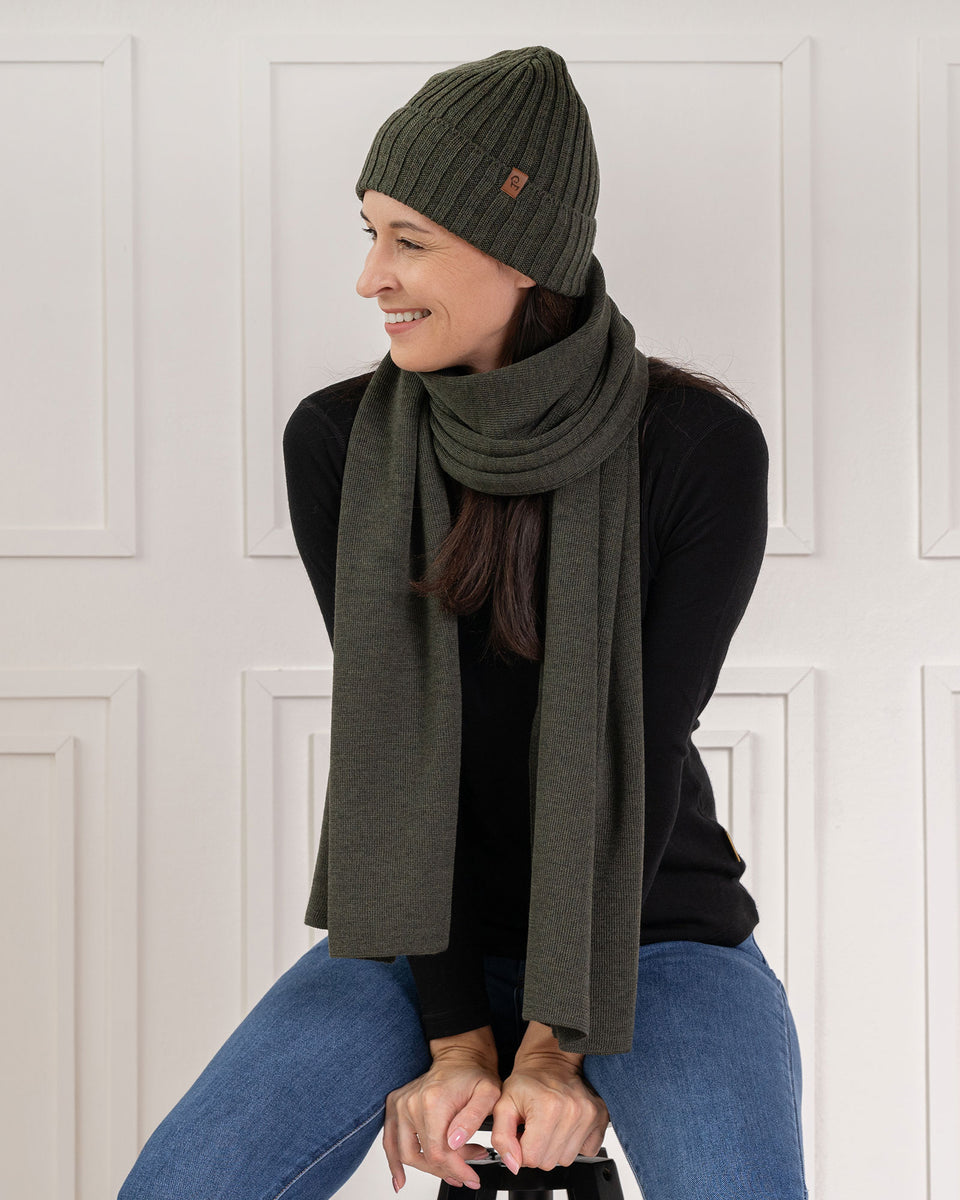 Keep yourself warm and protected from harsh weather conditions with our knitted Merino ribbed beanie and scarf 2-piece set. Crafted from 100% knitted Merino wool, these winter accessories are soft, breathable, and incredibly warm, providing you with a cozy experience. Merino wool has the unique ability to trap body heat without causing excessive sweating or discomfort. This warm accessory set is suitable for alll, making organic set a perfect gift for your spouse, friends, or family members. Choose our neck warmer and toasty headwear to combat the chilly weather without any worries.