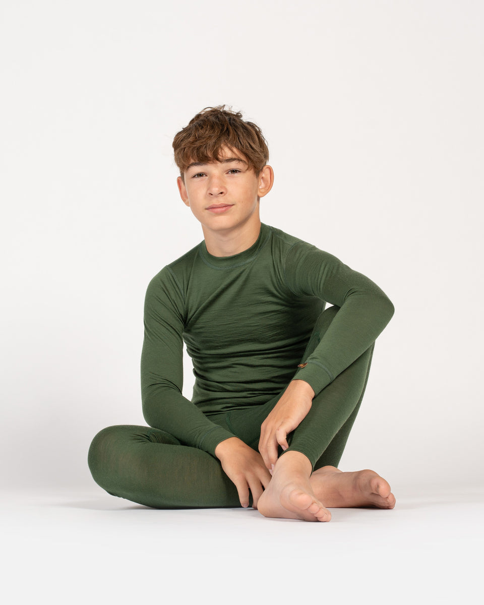 Upptäck den perfekta kombinationen av komfort och funktionalitet för din lilla äventyrare med vårt premium set med långärmad tröja och byxor för barn. Tillverkat av 100% merinoull, erbjuder detta termiska set en oöverträffad mjukhet mot känslig hud. Merinobaslagret är ett oumbärligt tillskott i varje barns garderob och ger naturlig temperaturreglering som håller dem varma i kyligare förhållanden och behagligt svala när de är aktiva. Vår merinoull är etiskt hämtad från en familjeägd gård i Nya Zeeland, vilket säkerställer högsta standard för djurvälfärd. Detta icke-irriterande och andningsbara plaggset garanterar att ditt barn håller sig varmt och redo för vad dagen än bjuder på, från lek inomhus till utforskning utomhus.