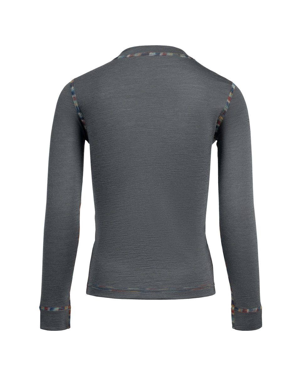 Stickad med omsorg av lätt Merinoull, är denna lekfulla grå långärmade barntröja med glada kontrastsömmar redo för varje äventyr! Gjord av 100 % naturlig Merinoull känns tröjan mjuk mot känslig hud, töjer där det behövs och skyddar naturligt mot bakterier. Hypoallergen och säker, är Merinotröjan ett smart val för föräldrar som vill ha både komfort och sinnesro. Supermjuk och aldrig kliande håller barntröjan små upptäckare bekväma hela dagen – ingen överhettning, inget krångel, bara glad rörelse. Det andningsbara, fukttransporterande tyget jobbar hårt så barnen kan fortsätta leka utan att känna sig fuktiga eller obekväma. Den moderna grå nyansen, framhävd med färgglada sömmar, ger en rolig twist till varje outfit – praktisk, stilren och äventyrssäker!
