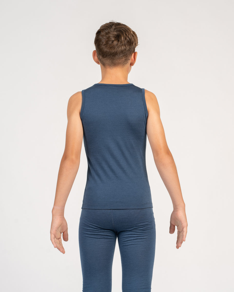 Introducera ditt barn till ren komfort med vår ärmlösa topp – en perfekt match för din lilla. Tillverkad av lätt 160gsm och mjuk men hållbar 100% Merinoull, känns den skön mot huden året runt. Detta gör ett linne till ett utmärkt val som ett baslager. Otroligt mångsidig, denna unisex bas-topp för barn är ett oumbärligt plagg som passar perfekt med vilken outfit som helst. Praktiskt är nyckeln: denna enkla ärmlösa t-shirt är lätt att sköta, motstår skrynklor och torkar snabbt. Ett linne är verkligen designat för att ge ditt barn ultimat komfort när de ger sig ut på sina dagliga upptäckter.