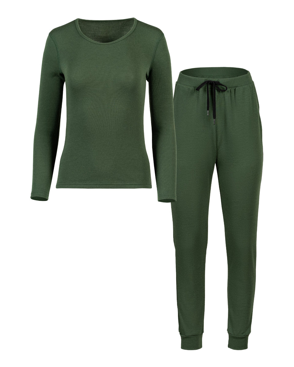 På jakt efter ett universellt fritidsplagg? Detta lyxiga lounge-set, tillverkat av Merinoull, kombinerar ultimat komfort med enkel stil. Den långärmade toppen har en avslappnad passform som faller mjukt över dina axlar, medan de matchande joggersen erbjuder en skräddarsydd silhuett med justerbar midja och avsmalnande benslut. Andningsbart och fuktavvisande håller detta set dig sval och fräsch, vilket gör det perfekt för lätta träningspass, slappande eller avslappnade utflykter. Naturligt luktresistent och antibakteriellt är det idealiskt för längre användning och resor. Mjukt vid beröring men ändå hållbart, levererar detta mångsidiga set en chic look samtidigt som det garanterar komfort hela dagen, oavsett vart din dag tar dig.