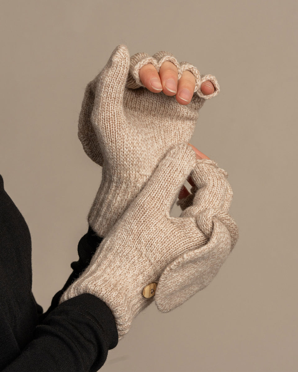 Låt inte vintern sakta ner dig – omvandlingshandskar är här för att hålla dig varm och ansluten. Våra praktiska ekologiska vantar för kvinnor är ett perfekt vintermåste. Tillverkade av lyxig Merinoull erbjuder fingerlösa handskar exceptionell värme, mjukhet och komfort. Vantar med flip-top har öppna fingertoppar, vilket gör det enkelt att använda din smartphone samtidigt som du håller händerna varma. Knappstängningen säkerställer en säker passform, och den omvandlingsbara designen gör att du enkelt kan växla mellan fingerlösa handskar och vantar. Håll dig varm och praktisk med ekologiska mångsidiga handskar för kvinnor. Perfekt för alla utomhusaktiviteter eller en avslappnad promenad i kylan.