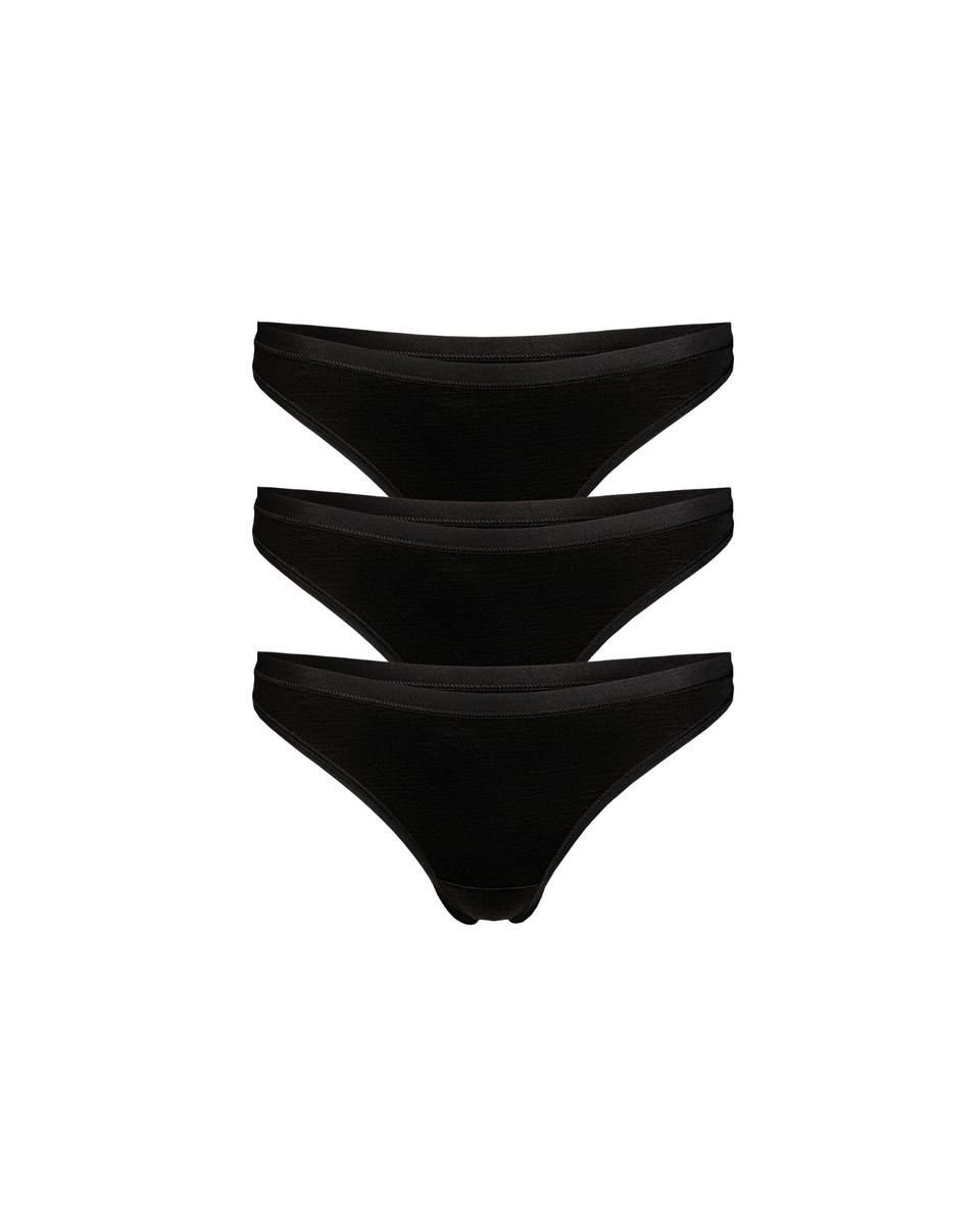 Komfort och hållbarhet – dessa är nyckelorden för dem som väljer stringtrosor för kvinnor av menique. Ännu mer, 3-pack med stringtrosor för kvinnor är ett verkligt värde för pengarna. Designade av 100% merinoull, är detta underkläder 160gsm lätta, alla tre par i den klassiska svarta färgen. Tyget har antimikrobiella och luktresistenta egenskaper, vilket skyddar kroppen från överhettning och svettning under dag och natt. Mjuka, andningsbara och snabbtorkande är dessa stringtrosor med elastisk midja alltid redo för action, så ta tre istället för ett par och öppna din resväska, fru.