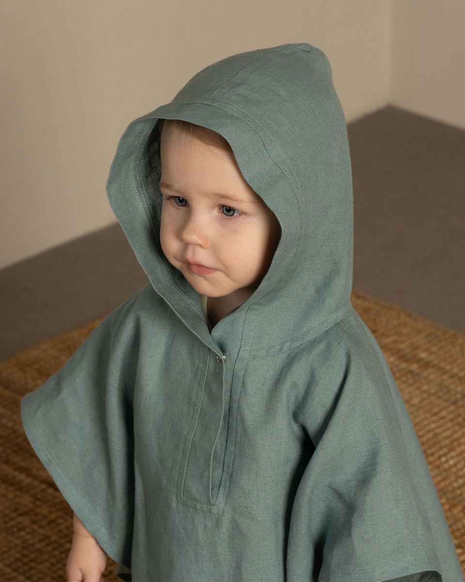 Hudvänliga babyponchos för pojkar och flickor har en söt skjortdesign, huva och en knapp vid halsen för en säker passform. Gjorda av 100% linne, våra småbarnsponchos torkar kroppen perfekt och ger komfort.