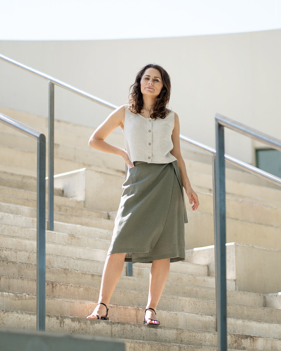 Midilång blyertskjol med två sidofickor, en vacker passform som elegant definierar dina kroppskurvor. Klassisk linnekjol för kvinnor, perfekt som en detalj i kostym, som passar utmärkt med klassiska skjortor för att skapa en formell look som du söker. Bär den på kontoret, vid formella evenemang, officiella middagar eller var som helst när du anser att det passar.